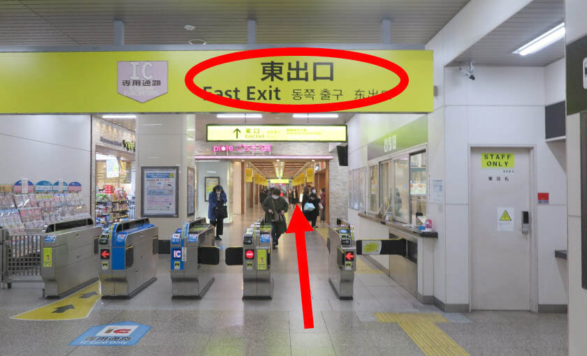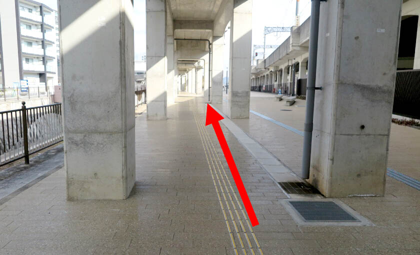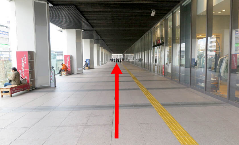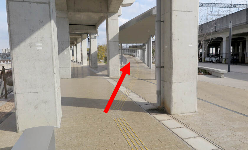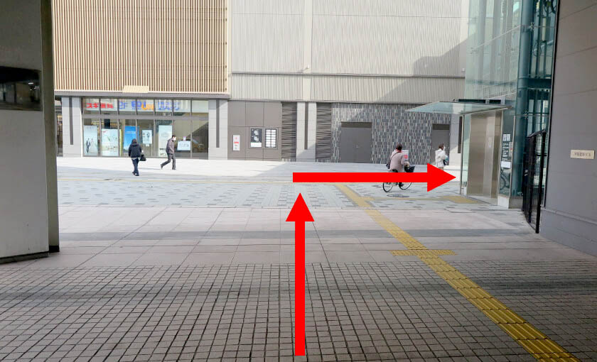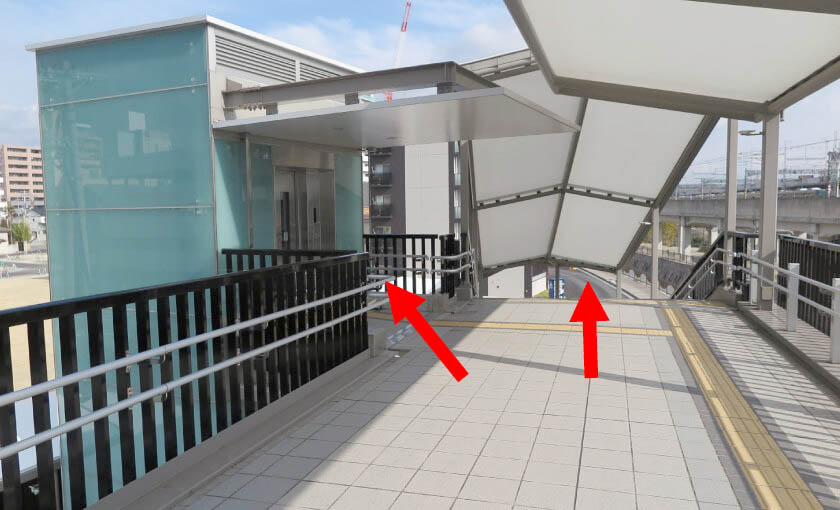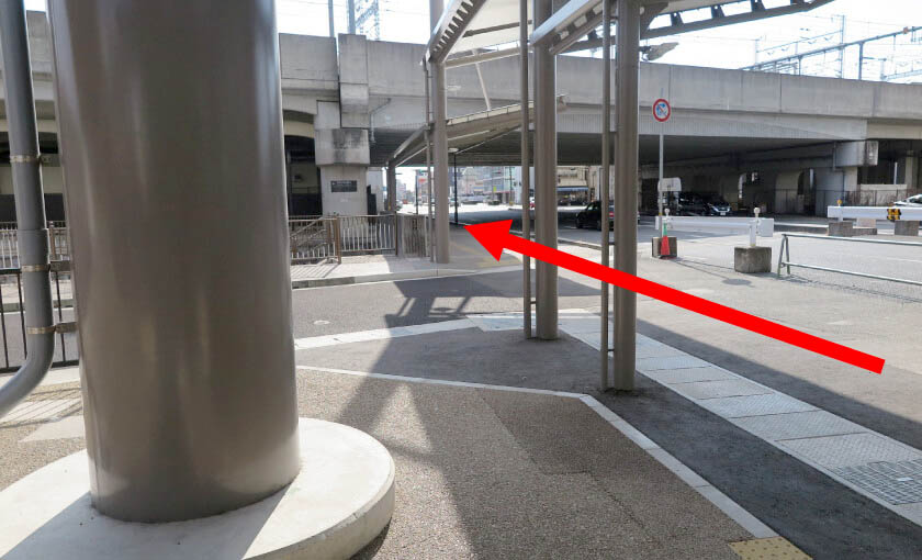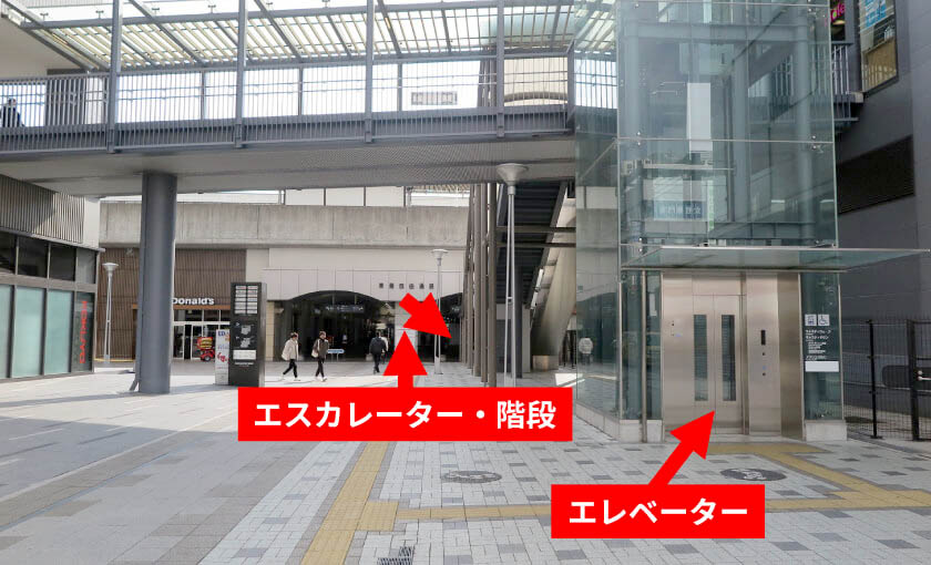※ バス停付近には横断歩道はございません。2階連絡デッキをご利用ください。