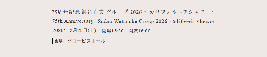Eventsイベント 11/15(土)10:00~チケット一般発売 料 金: 全席指定 9,500円 申込方法: ① 以下の水戸市民会館チケット予約サイトよりお申し込みください。 ② チケット予約サイトでのお申し込みが難しい方は、窓口や電話予約でも受け付けております。 ●窓口でのチケット発売● 平日9:00-20:00 土日祝日9:00-17:00 ●お電話でのチケット発売● お問い合わせ: 029-350-6060 受付時間:平日9:00-20:00 土日祝日9:00-17:00 注意事項: ※未就学児入場不可 ※枚数制限:4枚まで ※ご予約後の変更、キャンセルはできません。