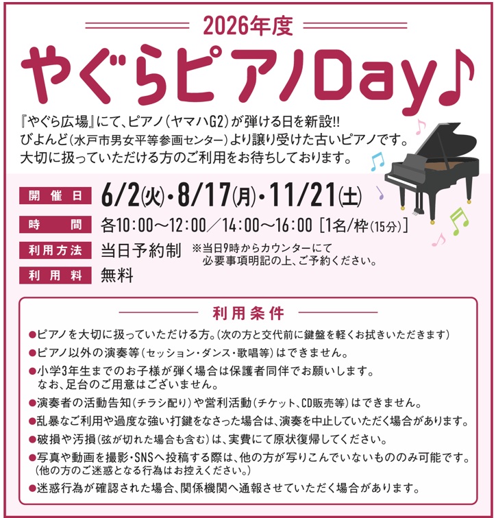当日9時からカウンターにて必要事項明記の上、ご予約ください。