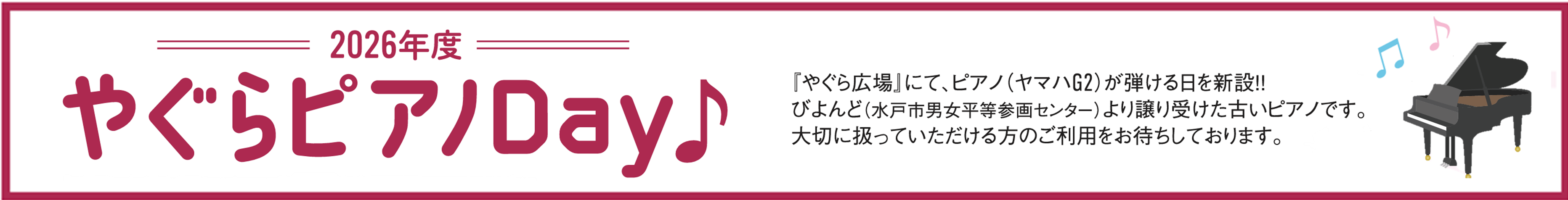 令和9年6月の空き状況を公開しました。2026年4月5日(日)から2026年4月15日(水)が受付期間です。詳しくは利用案内のページをご覧ください。